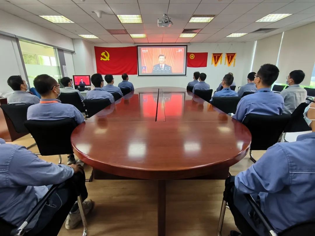 廣西防城港核電有限公司各黨支部、分工會、團支部結合安全生產、工程建設工作實際,在工作現(xiàn)場、會議室等20多個視頻點組織約600名黨員干部員工收看大會盛況直播。
