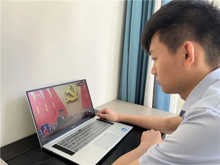 中國廣核新能源控股有限公司團委組織廣大團員青年職工收聽收看黨的二十大開幕直播,聆聽習近平總書記重要講話。