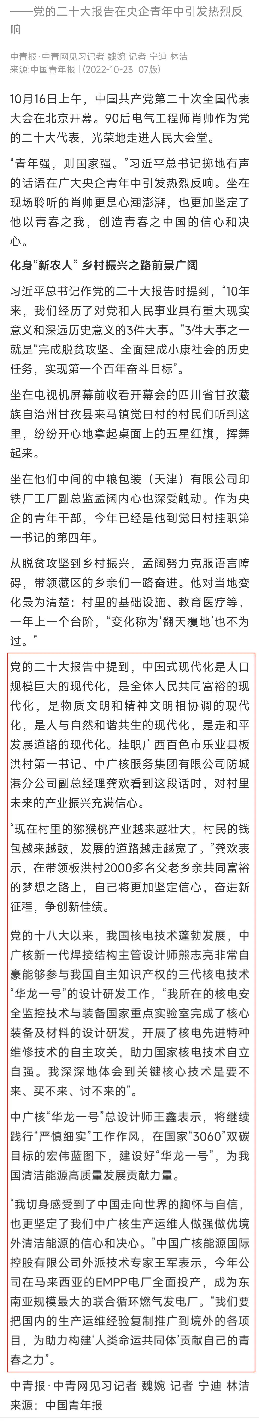 近期,人民日?qǐng)?bào)、新華社、央視《新聞聯(lián)播》、光明日?qǐng)?bào)、經(jīng)濟(jì)日?qǐng)?bào)、中國(guó)青年報(bào)等媒體對(duì)中廣核人學(xué)習(xí)黨的二十大精神情況進(jìn)行了報(bào)道。