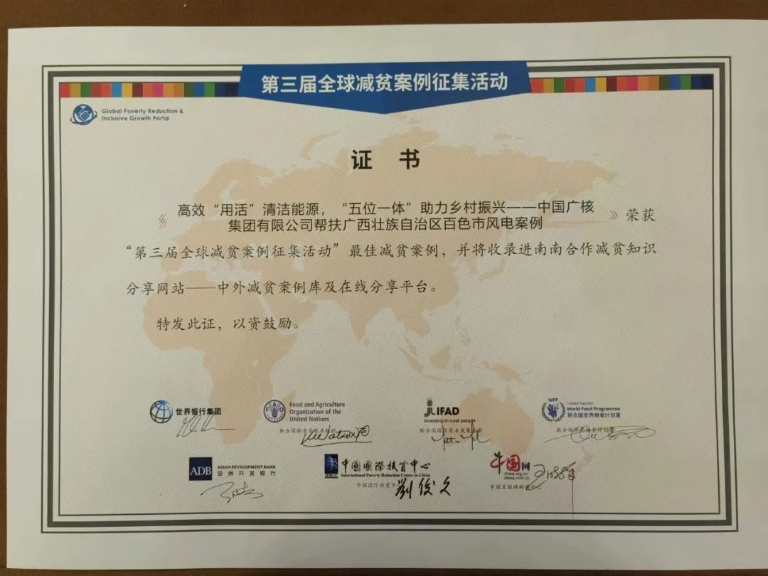 11月11日,在2022全球減貧伙伴研討會(huì)上,第三屆全球減貧案例征集活動(dòng)獲獎(jiǎng)案例正式發(fā)布。中廣核樂業(yè)風(fēng)電產(chǎn)業(yè)幫扶項(xiàng)目榮獲“最佳減貧案例”。該案例將按照國際標(biāo)準(zhǔn)改寫和翻譯,收錄進(jìn)中國-世界糧食計(jì)劃署南南合作減貧知識(shí)分享網(wǎng)站——中外減貧案例庫及在線分享平臺(tái),在全球范圍內(nèi)展現(xiàn)中廣核在減貧與鄉(xiāng)村發(fā)展方面的創(chuàng)新實(shí)踐和有效做法。