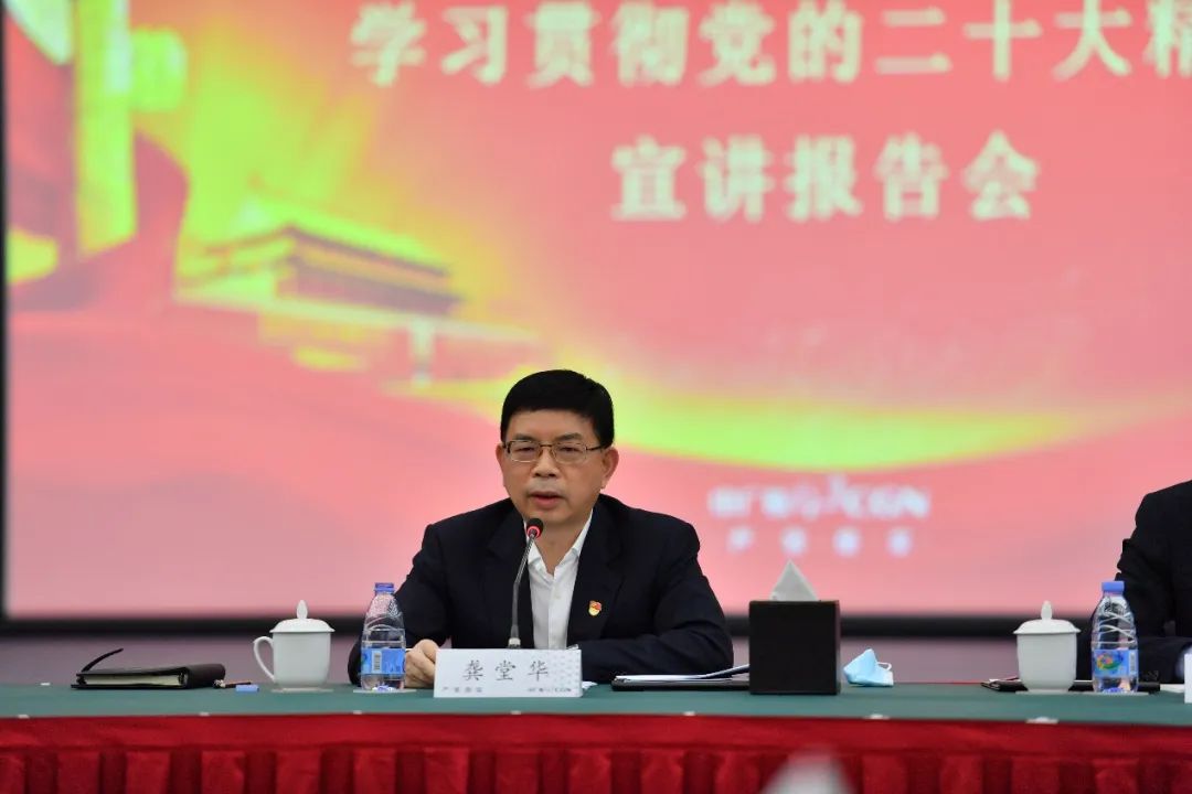 宣講會上,龔堂華指出,黨的二十大是在全黨全國各族人民邁上全面建設社會主義現(xiàn)代化國家新征程、向第二個百年奮斗目標進軍的關(guān)鍵時刻召開的一次十分重要的大會,是一次高舉旗幟、凝聚力量、團結(jié)奮進的大會。習近平總書記的報告,深刻闡釋了新時代堅持和發(fā)展中國特色社會主義的一系列重大理論和實踐問題,描繪了全面建設社會主義現(xiàn)代化國家、全面推進中華民族偉大復興的宏偉藍圖,為新時代新征程黨和國家事業(yè)發(fā)展、實現(xiàn)第二個百年奮斗目標指明了前進方向、確立了行動指南,是黨和人民智慧的結(jié)晶,是黨團結(jié)帶領(lǐng)全國各族人民奪取中國特色社會主義新勝利的政治宣言和行動綱領(lǐng),是馬克思主義的綱領(lǐng)性文獻。