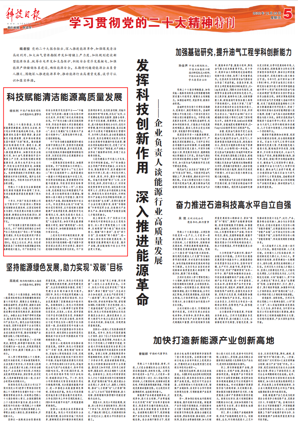 《科技日?qǐng)?bào)》刊發(fā)楊長(zhǎng)利署名文章:科技賦能清潔能源高質(zhì)量發(fā)展