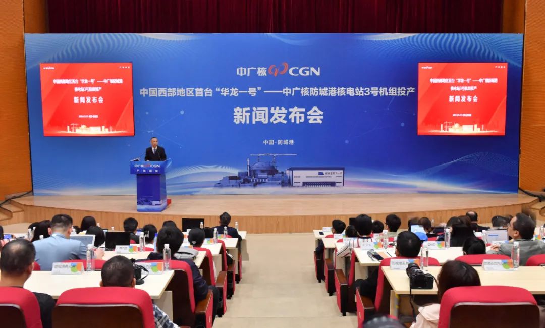 2023年3月25日,我國(guó)西部地區(qū)首臺(tái)“華龍一號(hào)”核電機(jī)組——中廣核廣西防城港核電站3號(hào)機(jī)組投產(chǎn)新聞發(fā)布會(huì)在防城港核電基地召開。