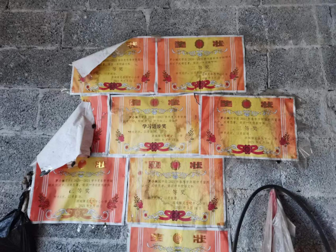 ▲羅小妹家滿墻的獎(jiǎng)狀