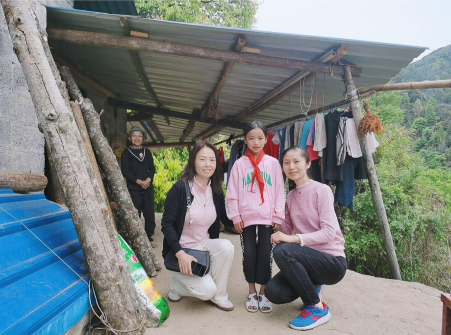 中廣核財(cái)務(wù)有限責(zé)任公司二、四黨支部的志愿者在覽金小學(xué)校長(zhǎng)諶業(yè)權(quán)和老師姚欣怡的陪同下,來到了幫扶對(duì)象羅小妹的家。