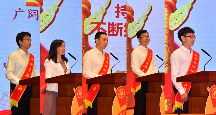 ▲集團(tuán)公司團(tuán)委書(shū)記、黨群工作部主任黃曉飛,集團(tuán)公司黨委巡視辦主任朱繼超為獲得集團(tuán)五四表彰的先進(jìn)青年代表頒獎(jiǎng)