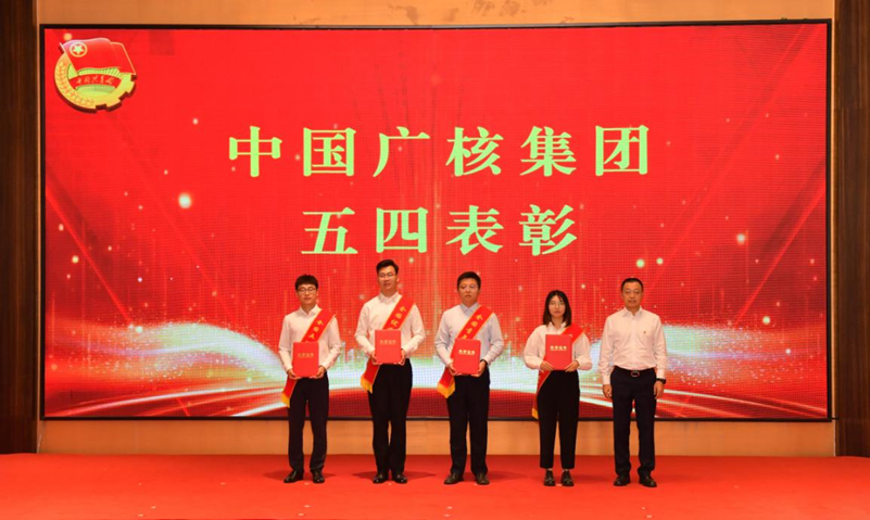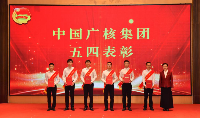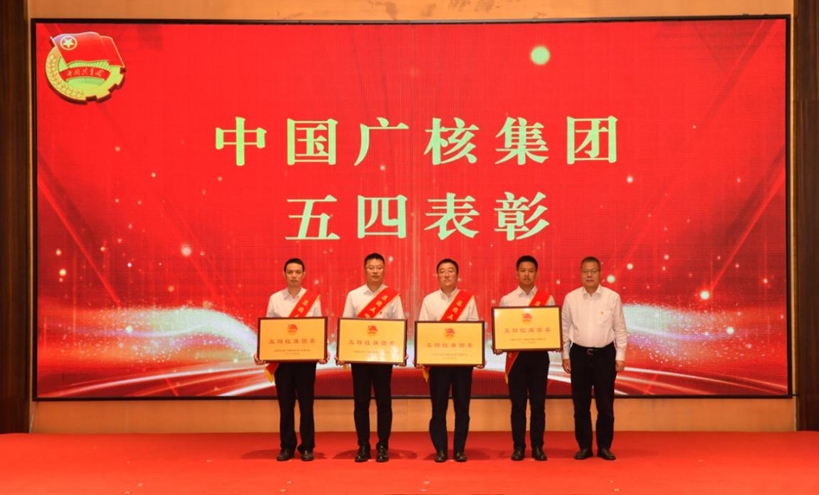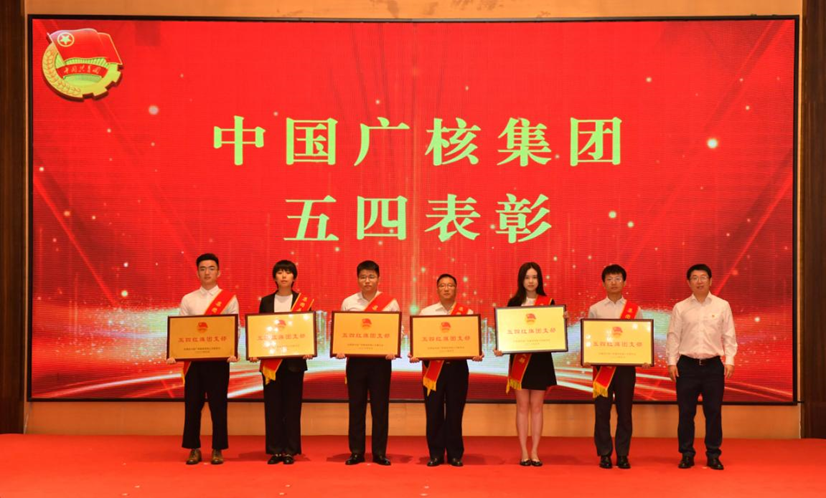 ▲核電股份公司財(cái)務(wù)總監(jiān)尹恩剛為獲得集團(tuán)五四紅旗團(tuán)委的先進(jìn)青年集體代表頒獎(jiǎng)