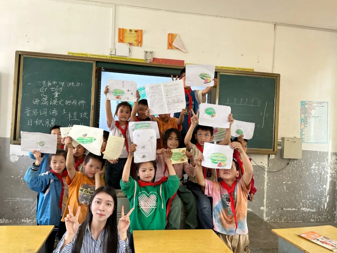 諧里小學(xué)坐落在樂業(yè)縣新化鎮(zhèn)諧里村,2023年4月2日,到達小學(xué)已經(jīng)是晚上八點多,在群山圍繞之下,學(xué)校在一片蟬鳴之中顯得格外靜謐。經(jīng)學(xué)校安排,我擔(dān)任了一至六年級的科學(xué)課教學(xué)任務(wù),兼顧一年級的傳統(tǒng)文化課與二年級的美術(shù)課。第一次站上講臺的時候,臺下幾十雙圓溜溜的眼睛齊刷刷看著我,他們清澈的眼眸里,透露著孩子特有的純粹和真實。