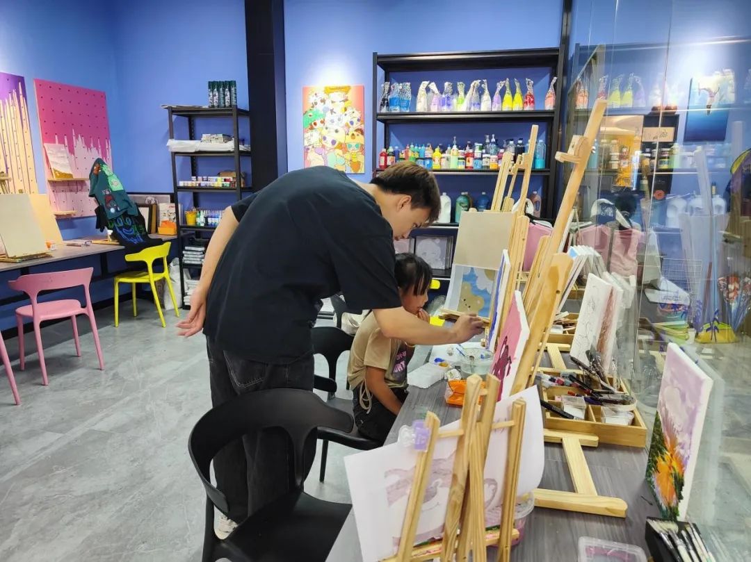 △鄧小雪和助夢團在繪畫室