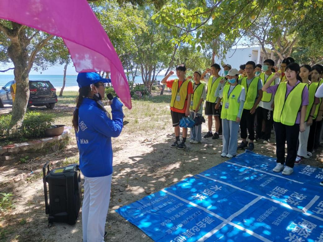 ▲凈灘活動中,路小軒帶領(lǐng)眾人莊嚴(yán)宣誓,喊出守護(hù)美麗海岸線的決心,并開展海灘垃圾分類培訓(xùn)