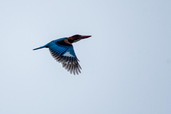 ▲國家二級保護(hù)動物白胸翡翠在惠核青年林上空掠過