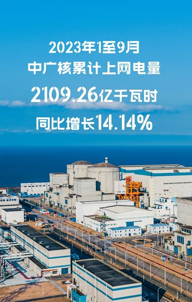 2023年1-9月,中廣核累計商運發(fā)電量2237.62億千瓦時,同比增長14.51%,上網(wǎng)電量2109.26億千瓦時,同比增長14.14%。