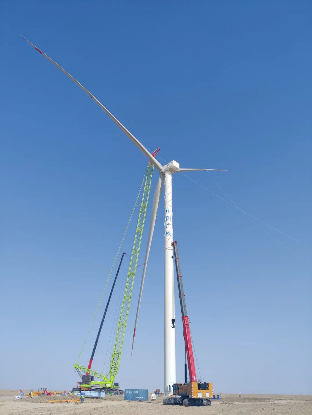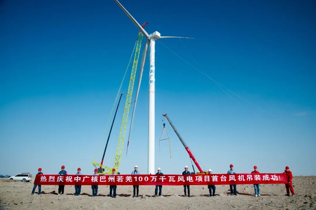 10月21日,中廣核新疆若羌100萬千瓦風(fēng)電項(xiàng)目完成首臺風(fēng)機(jī)吊裝。