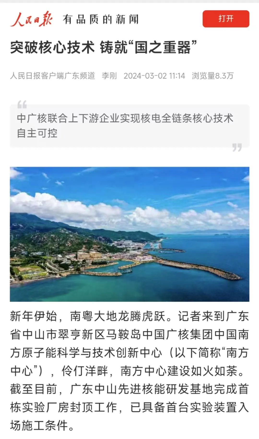 中廣核黨委書記、董事長楊長利表示,新質(zhì)生產(chǎn)力的形成,離不開技術(shù)革命性突破、要素創(chuàng)新性配置以及產(chǎn)業(yè)深度轉(zhuǎn)型升級(jí)。中廣核充分融入國家區(qū)域創(chuàng)新布局,集聚優(yōu)勢科研力量,著力打造原創(chuàng)技術(shù)策源地,以科技創(chuàng)新引領(lǐng)核能新質(zhì)生產(chǎn)力發(fā)展。中廣核充分融入國家區(qū)域創(chuàng)新布局,集聚優(yōu)勢科研力量,著力打造原創(chuàng)技術(shù)策源地。除南方中心外,中廣核還高質(zhì)量推進(jìn)建設(shè)長三角新興產(chǎn)業(yè)技術(shù)創(chuàng)新中心,聚焦核技術(shù)和數(shù)字化等新興產(chǎn)業(yè)關(guān)鍵技術(shù)研發(fā),各項(xiàng)建設(shè)任務(wù)有序推進(jìn);圍繞新能源領(lǐng)域科技創(chuàng)新,積極謀劃北方中心建設(shè)工作。