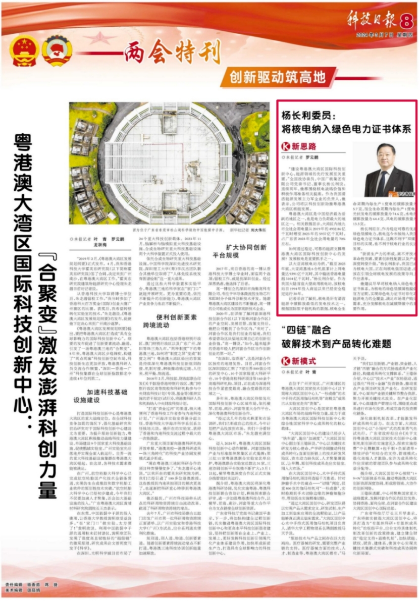 “建設(shè)粵港澳大灣區(qū)國(guó)際科技創(chuàng)新中心,能源領(lǐng)域的先行發(fā)展至關(guān)重要?!比珖?guó)政協(xié)委員,中國(guó)廣核集團(tuán)有限公司黨委書(shū)記、董事長(zhǎng)楊長(zhǎng)利說(shuō)。連續(xù)兩年,他都圍繞核電戰(zhàn)略價(jià)值和積極作用準(zhǔn)備相關(guān)提案。作為我國(guó)清潔能源發(fā)展主力軍企業(yè)的負(fù)責(zé)人,他表示,公司將以科技創(chuàng)新助推粵港澳大灣區(qū)核能發(fā)展。