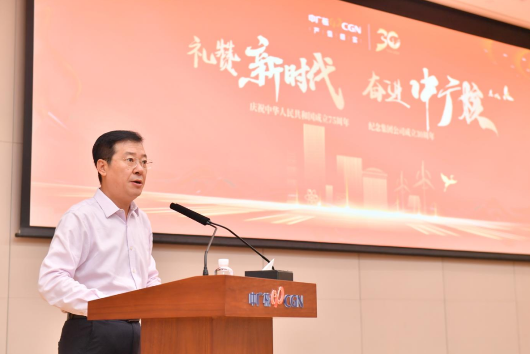 龐松濤表示,2024年是中華人民共和國成立75周年,同時也是中國廣核集團有限公司成立30周年,在這個具有重大歷史意義的特殊時刻,集團決定舉辦“禮贊新時代 奮進中廣核”主題紀念活動,系統(tǒng)梳理集團的奮斗歷程和發(fā)展成果,向中華人民共和國成立75周年獻禮,為集團開啟新一輪深化改革凝聚智慧和力量。龐松濤對廣大干部員工提出兩點希望:一是要不忘來時路,始終牢記“姓黨為民”本色根脈,大力弘揚忠誠擔(dān)當(dāng)奉獻的優(yōu)良傳統(tǒng),從大亞灣核電站到中廣核,從單一核電項目到清潔能源集團,中廣核的孕育與誕生,得益于黨中央的堅強領(lǐng)導(dǎo)、全國人民的大力支持和核工業(yè)系統(tǒng)黨員群眾的艱苦奮斗、頑強拼搏。二是要繼續(xù)走好前行路,深入踐行“嚴慎細實”工作作風(fēng),奮力譜寫高質(zhì)量發(fā)展新篇章。黨的十八大以來,集團順應(yīng)新時代高質(zhì)量發(fā)展要求,聚焦“核”與“電”,不斷培育壯大新興產(chǎn)業(yè),打造形成核能、核燃料、新能源、核技術(shù)應(yīng)用、數(shù)字化、科技型環(huán)保和產(chǎn)業(yè)金融“6+1”產(chǎn)業(yè)體系,加快向建設(shè)世界一流清潔能源企業(yè)邁進。