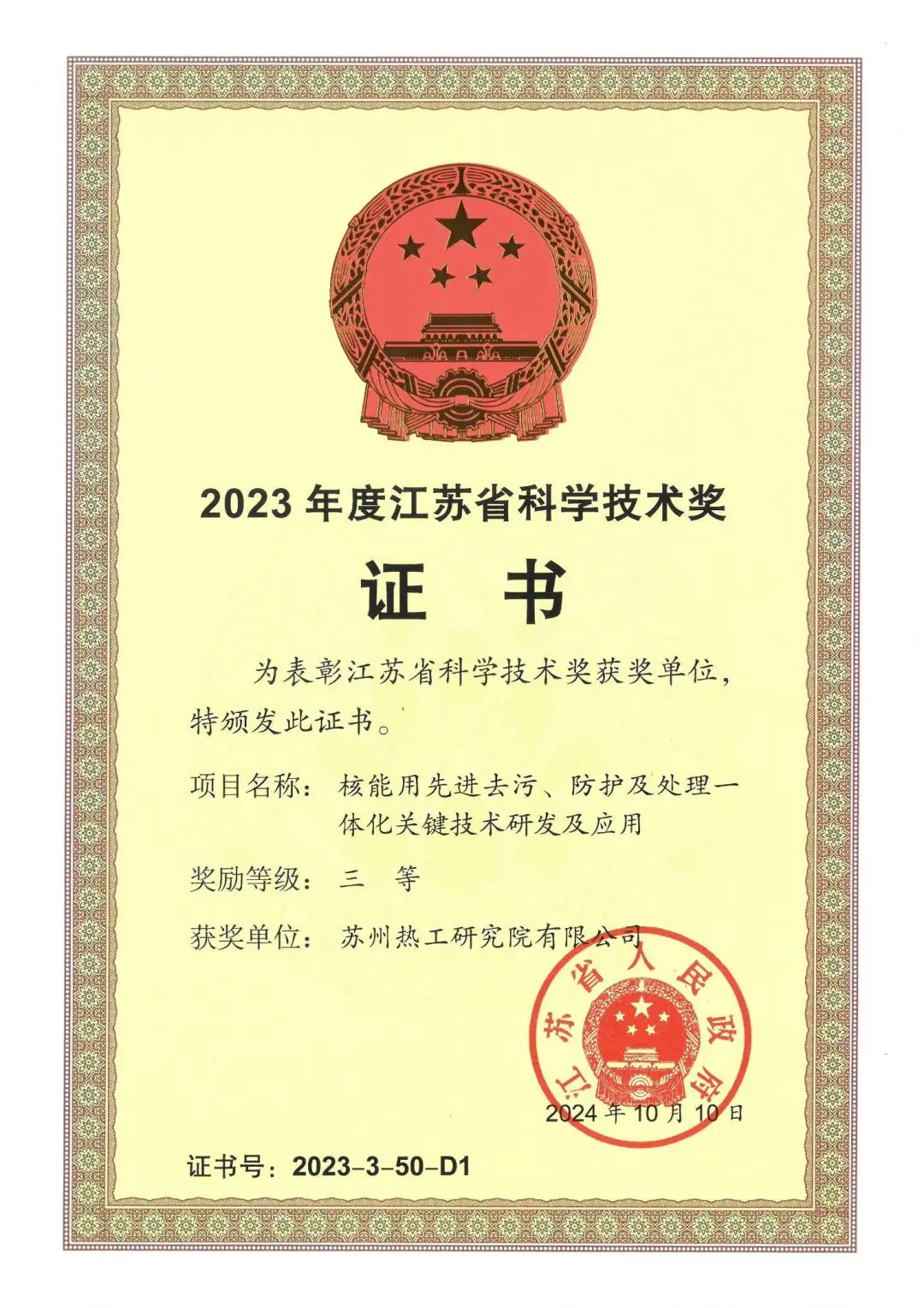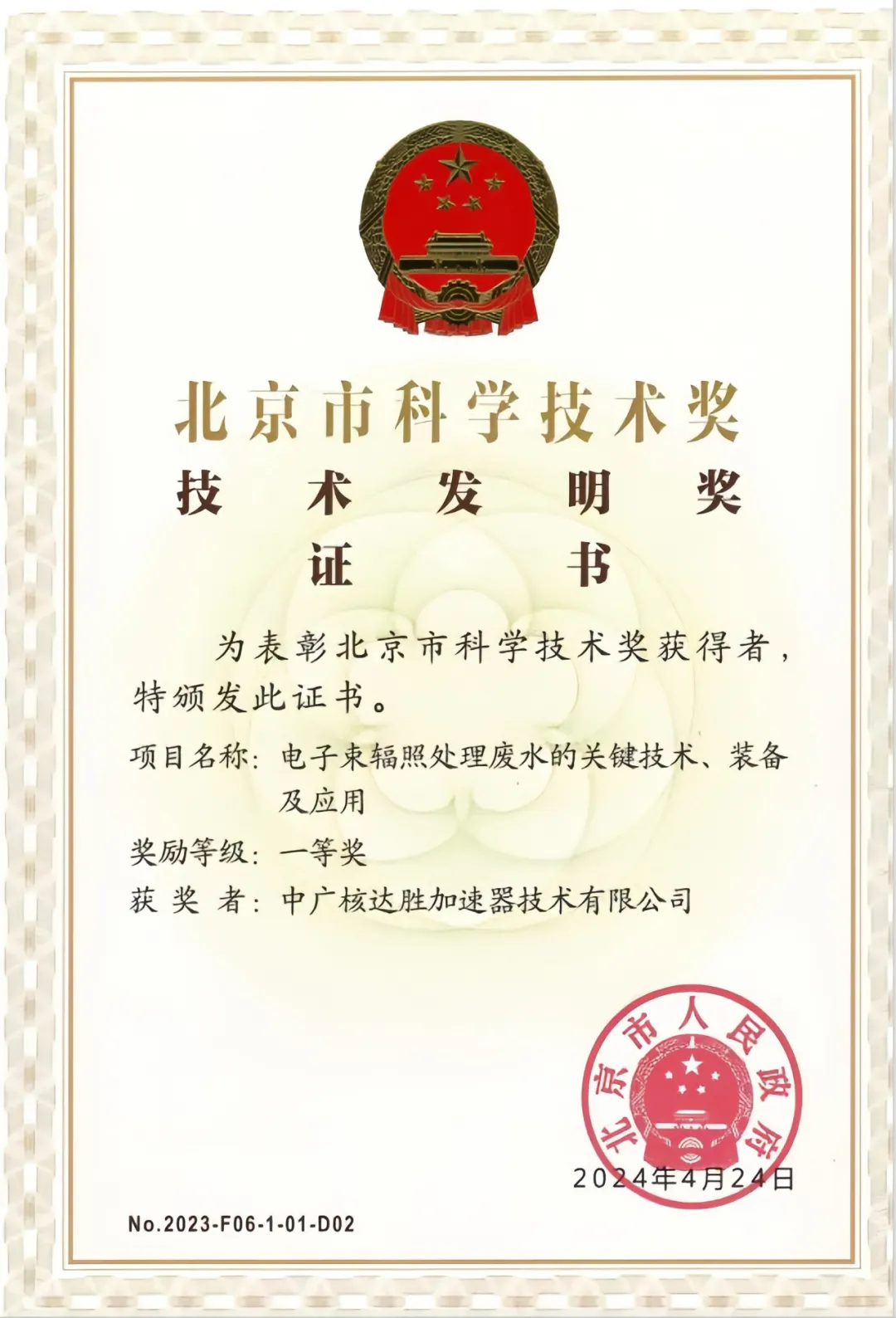 近期,中廣核連續(xù)收獲科學(xué)技術(shù)領(lǐng)域獎項!在11月19日召開的北京市科技大會暨科學(xué)技術(shù)獎勵大會上,由清華大學(xué)提名,中廣核技下屬達勝加速器技術(shù)有限公司、達勝科技有限公司參與完成的“電子束輻照處理廢水的關(guān)鍵技術(shù)、裝備及應(yīng)用”項目斬獲北京市科學(xué)技術(shù)獎技術(shù)發(fā)明獎一等獎。此外,從蘇州市科技局也傳來喜訊,蘇州熱工研究院有限公司牽頭完成的“核能用先進去污、防護及處理一體化關(guān)鍵技術(shù)研發(fā)及應(yīng)用”項目榮獲江蘇省科學(xué)技術(shù)獎三等獎。