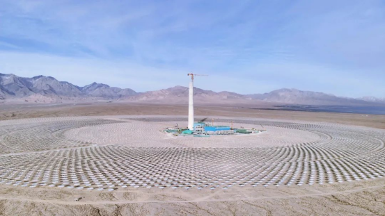 中廣核德令哈100萬千瓦光熱儲一體化項目是國務(wù)院國資委戰(zhàn)新產(chǎn)業(yè)“百大工程”之一。該項目位于青海省海西州德令哈市光伏(光熱)產(chǎn)業(yè)園區(qū),采用光伏與塔式光熱耦合發(fā)電的多能互補新型發(fā)電技術(shù),儲能配比率高達(dá)25%,是國內(nèi)在建光熱儲能配比率最高的光熱儲多能互補項目。其中,80萬千瓦光伏發(fā)電已并網(wǎng)發(fā)電;20萬千瓦光熱儲能發(fā)電是國內(nèi)單體規(guī)模最大的塔式光熱項目,目前吸熱塔、主廠房主體結(jié)構(gòu)已順利封頂,各項設(shè)備安裝工作有序推進(jìn)。