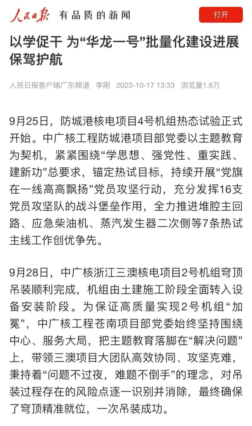 以學(xué)促干 為“華龍一號(hào)”批量化建設(shè)進(jìn)展保駕護(hù)航