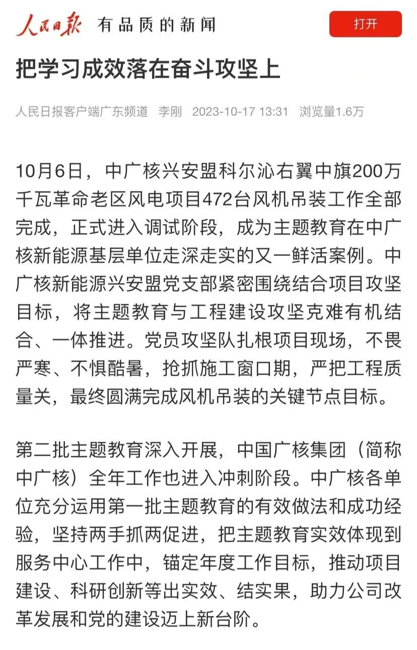 近日, 人民日報(bào)、光明日報(bào)刊發(fā)文章聚焦報(bào)道中廣核扎實(shí)推動(dòng)主題教育走深走實(shí),以實(shí)干實(shí)績推動(dòng)高質(zhì)量發(fā)展。